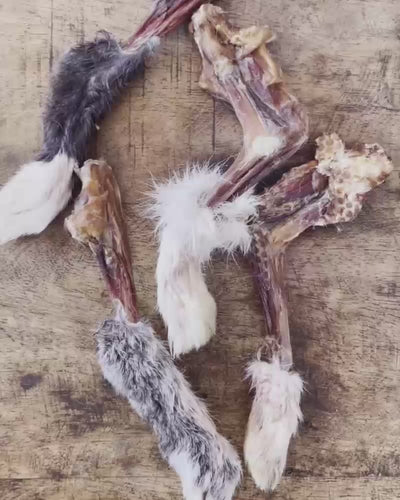 Our Rabbit Paws with fur are ideal for adult cats, small to medium dogs, or as a quick, enrichment snack for larger pups.