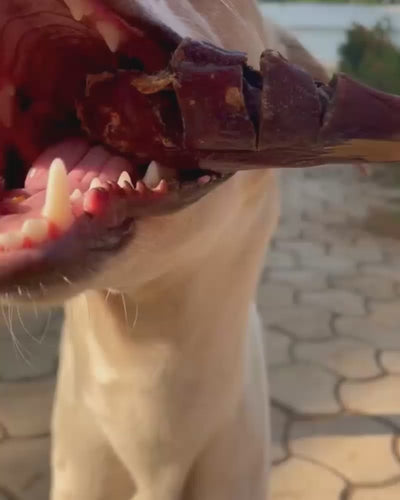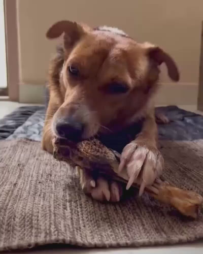 The texture offers plenty of meat and tendons to strip off and a bone to crunch. This supports dental health by flossing, scraping plaque and tartar and polishing teeth.